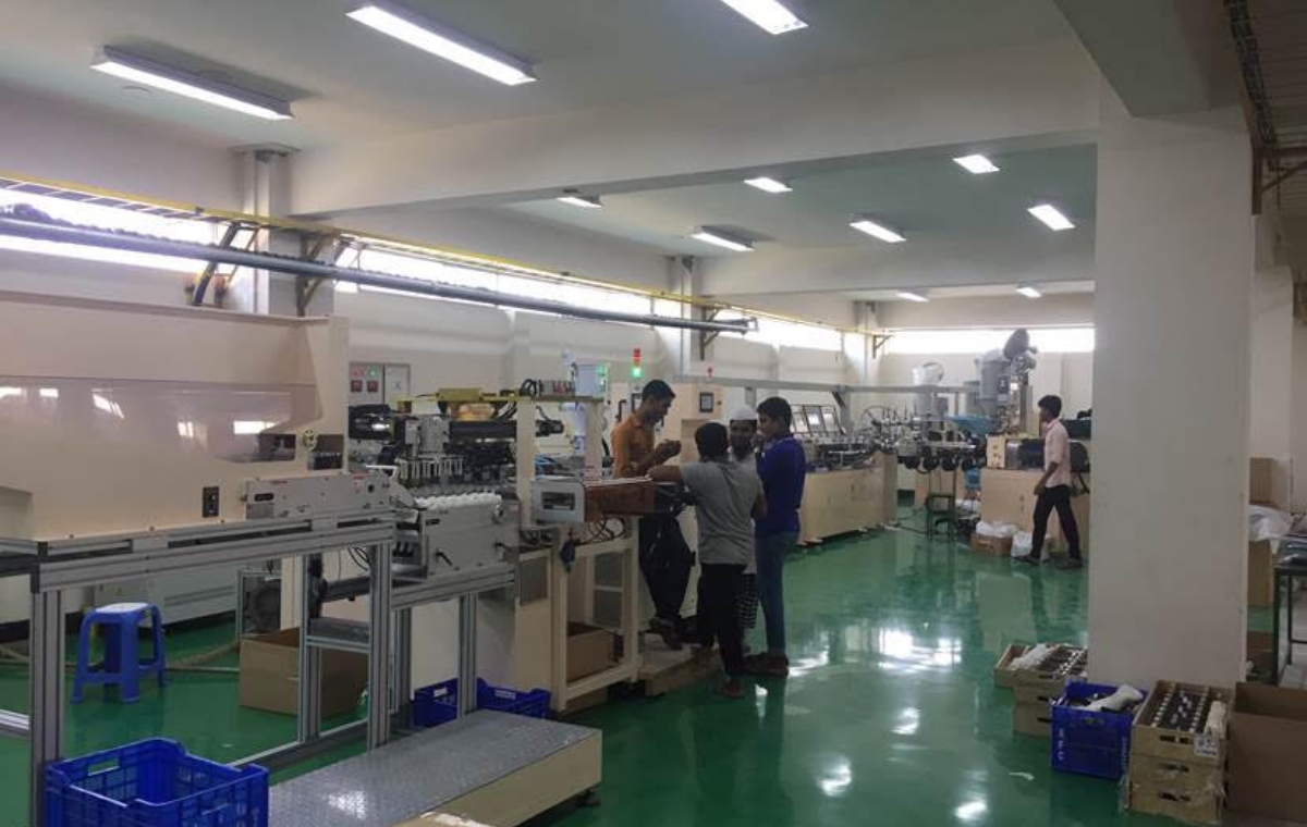 We assisted in planning and setting up a full five-stage production line, which includes an extrusion machine, heading machine, printing machine, capping machine, and hot stamping machine.